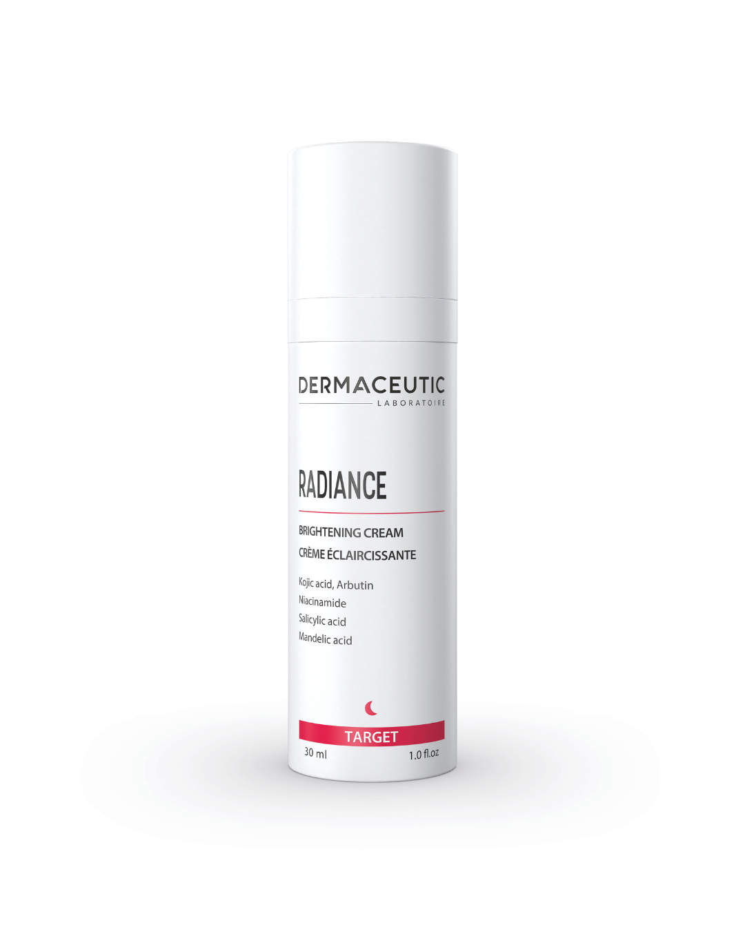 NEW IMPROVED FORMULA - BRIGHTENING CREAM Radiance gently exfoliates the skin and restores its luminosity thanks to the synergy of high-performance acids and lightening agents in optimal concentrations. Perfect for dull complexions and uneven skin texture. Suitable for all skin types Fragrance free